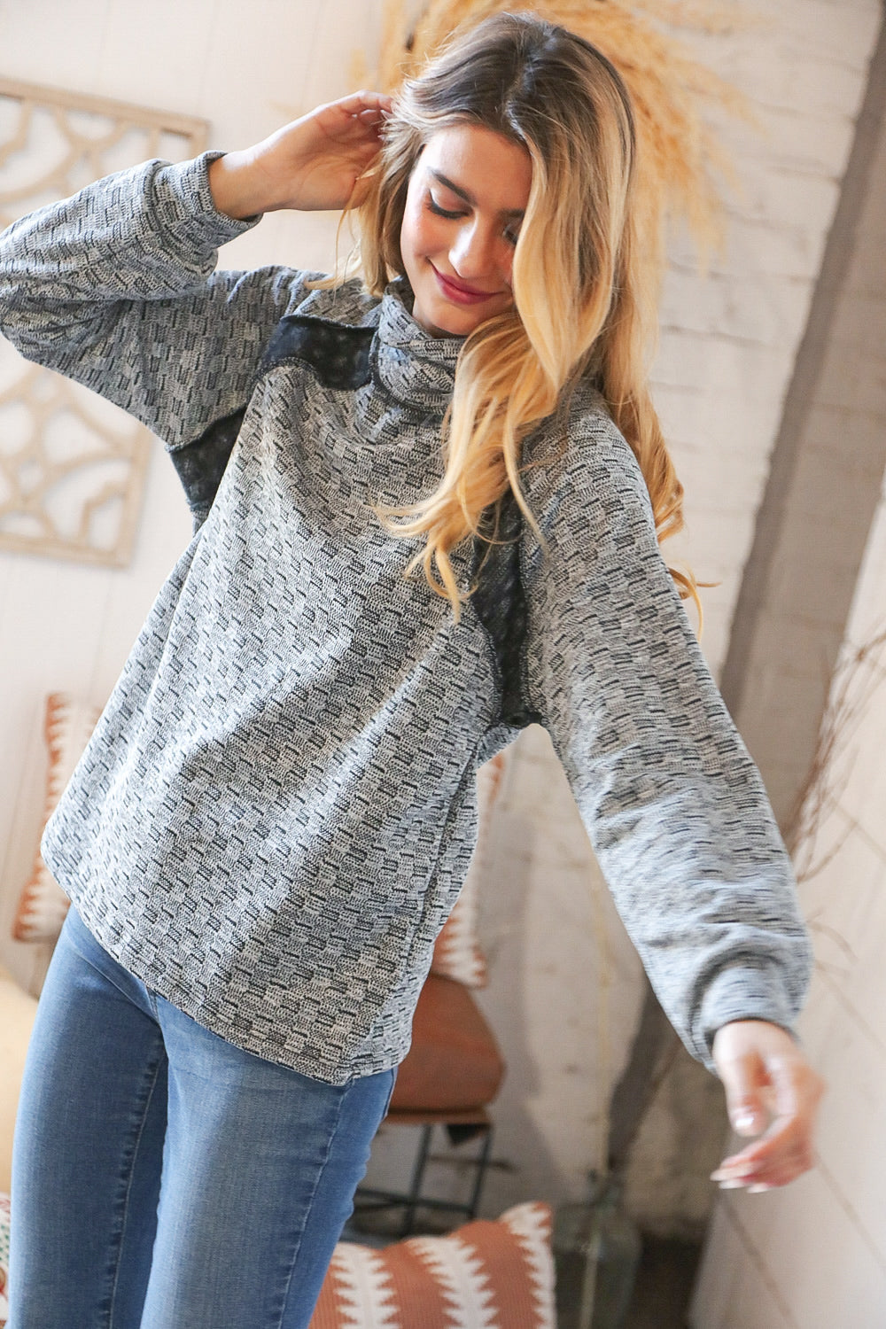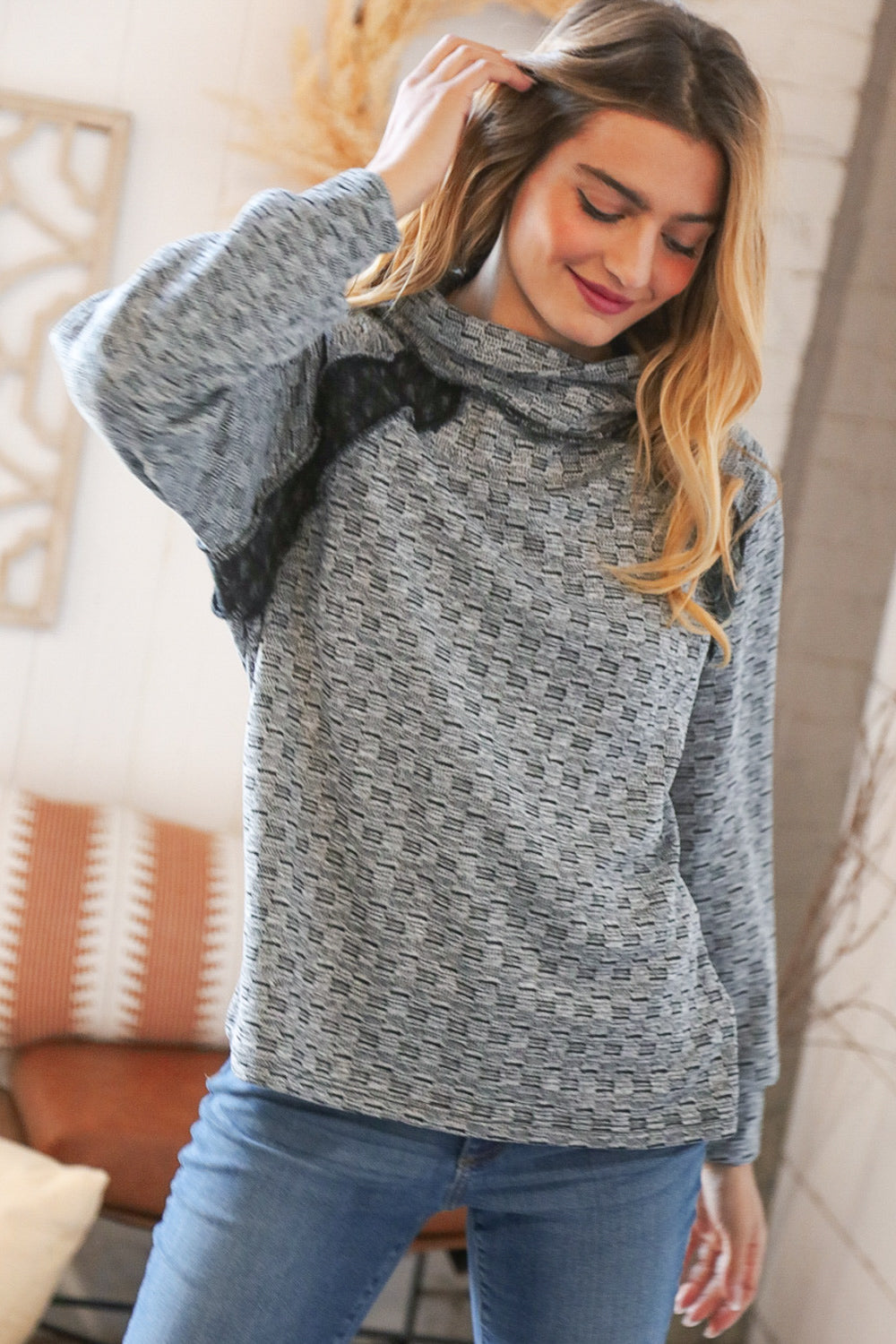 Turtleneck + Bubble Sleeves + Textured Jacquard Knit