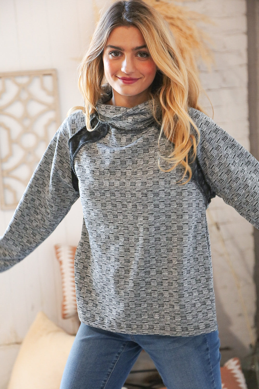 Elevate your casual closet with this classic high neck turtleneck sporting made with textured jacquard knit and long bubble sleeves. Cuffs and a straight edge hem offer a stylish and flattering look.