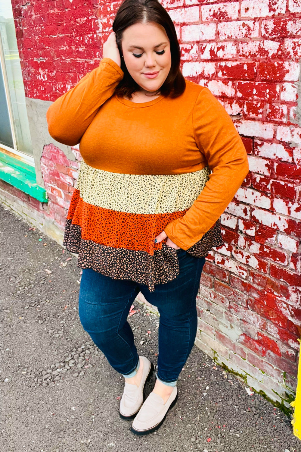 Give You Joy Rust/Taupe Leopard Print Tiered Babydoll Top